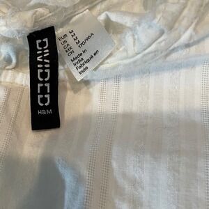 Keywords: H&M, Divided, white top, textured, ribbed, ruffle neck, cropped, long sleeve, keyhole back, tie back, raw hem, feminine, casual, basic, romantic, whimsical, cottagecore
