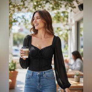Lulu's ❤️Black Sheer Sleeve Bodysuit