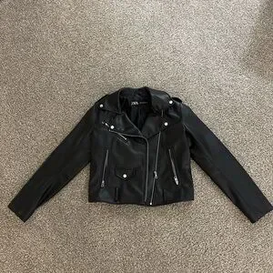 Zara Women's Black Leather Biker Jacket