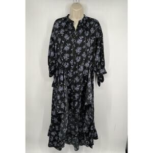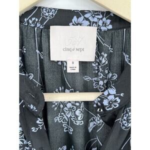 Cinq a Sept Halette Wrap Midi Dress Black Blue Floral Print Size 8
