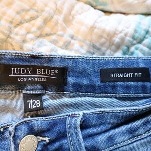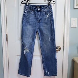 Judy Blue Straight Fit Medium Wash Distressed Jeans Womens Size 28