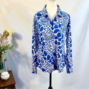 IBKUL Bianca Royal Blue Print Long Sleeve Quarter Zip Golf Shirt Sz Large🧡