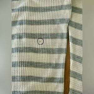 American Eagle Outfitters (AEO) Women’s Grey/White Striped Button-Down Cardigan in Size Large (L/G)* Made From Cotton, Rayon and Polyester.