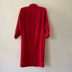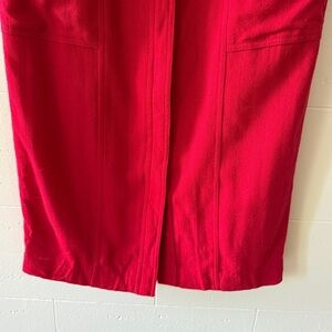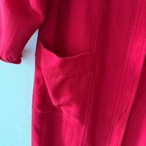 This vintage wool jacket by the brand ROUIE is the perfect red color. It's fully lined with two open pockets in the front. The sleeves have a slight balloon effect and it does have small integrated shoulder pads for structure, making it the perfect fall staple. In excellent pre-owned condition.