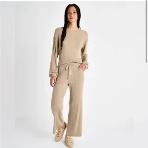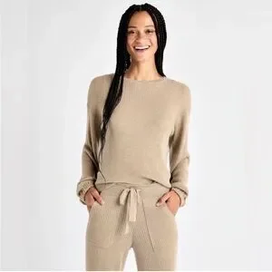 NWT Splendid Georgie Ribbed Knit Loungewear Sweater Oat Beige Size Large