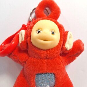 Plush Red Teletubby Po Teletubbies Backpack Clip Keychain 1998 Rubber Face