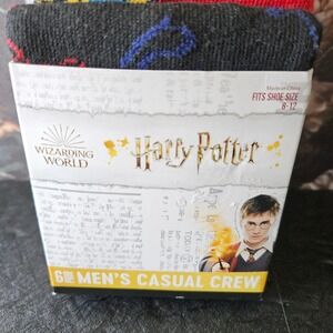 Harry Potter Wizarding World Mens Casual Crew Socks - 6 PAIR - NEW - Men Sz 8-12