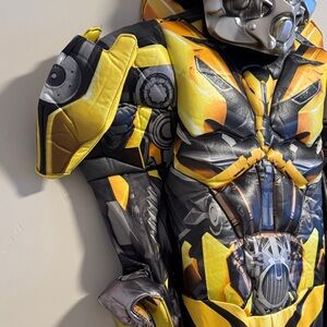 Transform into a superhero with this Hasbro costume. Features bold yellow and black design. Perfect for imaginative play. Used once. No stains or tears. Has sore coverings, mask and overpriced suit. My son is a heavier 8 year old. Average height. The costume fit him perfect.