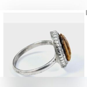 Vintage Sterling Silver Carved Tiger Eye Cameo Ring