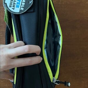 Expandable lunch box with double capacity. Includes two ice walls. Comes with a bento container set. Water and stain resistant.