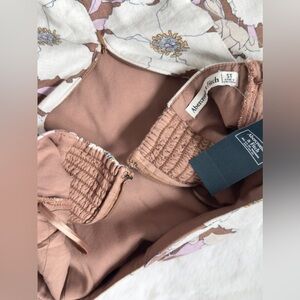 NWT A&F light brown floral print Halter Linen-Blend Mini Dress