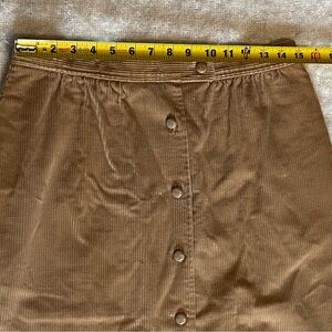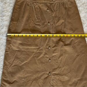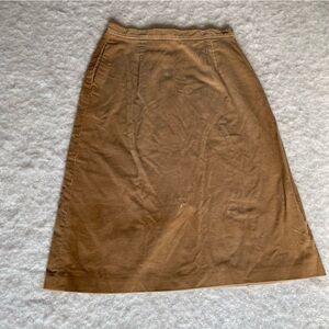 This vintage 70s women's long brown corduroy skirt is a stylish addition to any wardrobe. It is in excellent vintage condition. Made from cotton corduroy, this skirt features a high rise and button closure, perfect for casual or workwear occasions. With a retro theme and pockets for added functionality, this skirt is ideal for the winter, fall, and spring seasons. The unbranded piece is in an approximate size S/M, making it a versatile choice for a variety of styles.