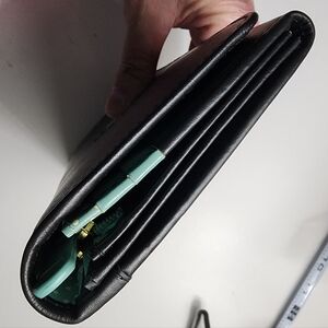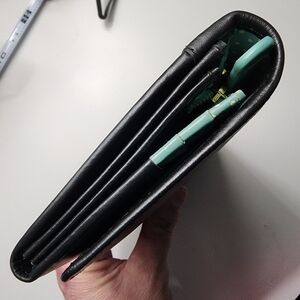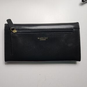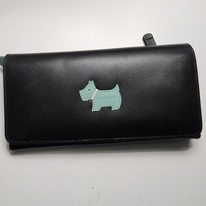 Stylish Radley London Navy leather wallet featuring the signature Scottie logo. Perfect for everyday use. Plenty of slots and compartments to organize your essentials. Adorable and fun mint polka dot interior. New condition. One small scuff on outside flap. (see pictures)