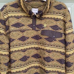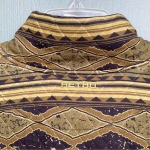 HeyBo Quilted Pullover Jacket Hermitage Q-Snap Olive Black Geo Aztec Mens Small ~ Banded hem and cuffs ~ 1/4 Snap ~ Logo front and back ~ Front flap pocket