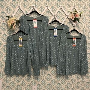 Lucky brand peasant boho top - green multi. Multiple sizes and quantities available. Long sleeve, square neck. 60% cotton 40% modal.