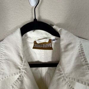 Some surface level marks at bottom of jumpsuit near cuffs (last 4 photos, minor)