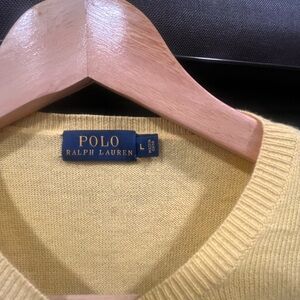 Chic light yellow cardigan by Polo Ralph Lauren. Features a classic button-up design. Soft and stylish for versatile wear.