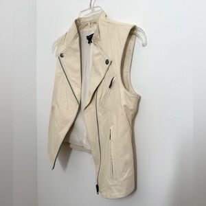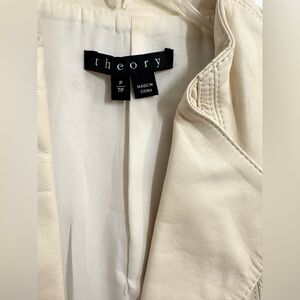 Theory Zida leather moto vest in off-white lamb leather.