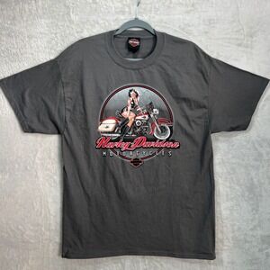 Harley Davidson Mens L Pin Up Girl Motorcycle Graphic Tee Gray Grand Junction CO