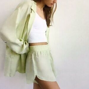 Zara Fillsens pistachio green lime tencel lyocell high waist shorts bloomer bubble flowy summer resort vacation minimalist coastal