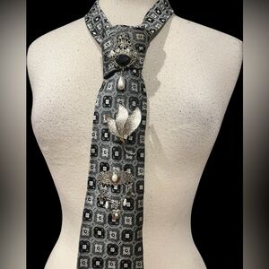 The brooch project! A new accessory that can change up any outfit and definitely a conversation piece! I call it a starter kit for brooch collector. I’m giving you a tie and three brooches to get you going the idea is to keep adding to it whether to wear or hang as art and express your personality in more detail. Each one is unique so no two are alike… all vintage ties and brooches. Have fun and get creative!