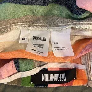 Reformation, Clare paint, 10 petite size. Fits small, could probably fit an 8. This is older Reformation. Chic wide leg pants with vibrant stripes. Perfect for a bold look. Comfortable and stylish.