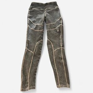 Free People movement New Flow Leggings Vintage Black Washed contrast stitch XS