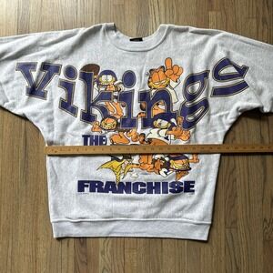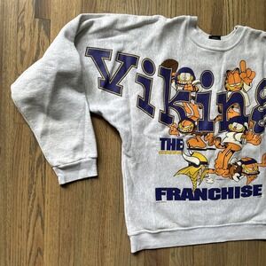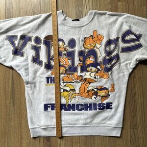 Vintage Minnesota Vikings Spellout NFL Rare Garfield Pullover Crewneck SZ M 90s