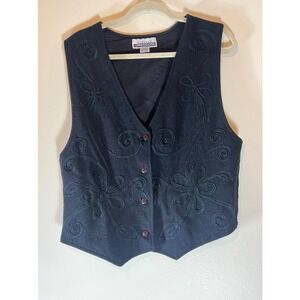 BODY XPRESSIONS Vintage Black Embroidered Wool Blend Vest Women's Size L