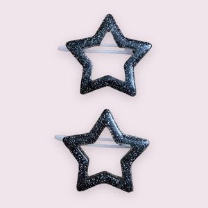 Black and Silver Glitter Star Hair Clips
