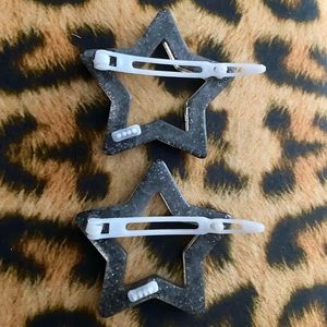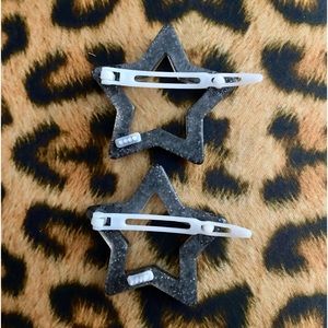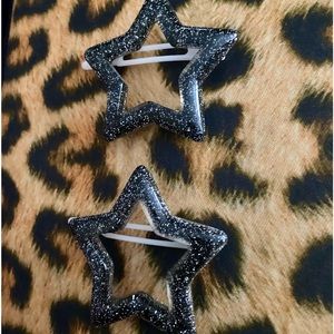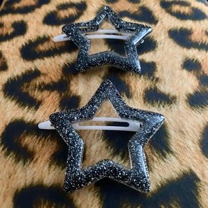 2 plastic black with silver glitter Star hair clips. These are new, never worn