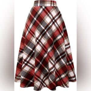 Womens Long Wool Plaid Tartan Aline High Waisted Winter Skirt Small Wine Red