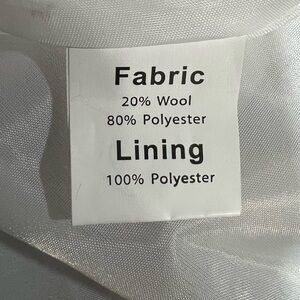 • Shell: 20% Wool, 80% Polyester
