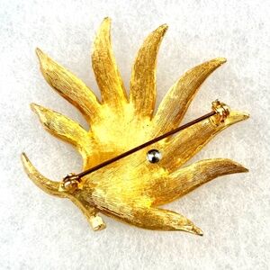 Vintage gold tone Feathers Brooch w/ cubic zirconia