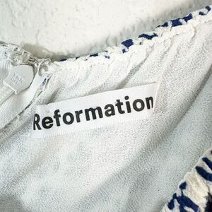 REFORMATION Jo Floral Blue White Smocked Mini Dress Size 12 Short Puff Sleeve