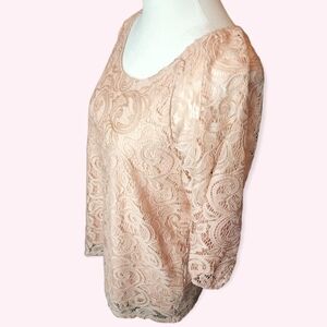 Boho Chic Blouse, Pale Pink Lace Tops, Lace Tops, Adrianna Papell Tops, Elegant Tops, Bohochic Tops, Feminine Tops, Blouse, Classy, Metallic Shine, Shiney, Lovely, Valentine's Day, Valentines Day, Beautiful, Pastel Pink, Baby Pink, Coquette, Neutral, Nude Pink, Gorgeous, Pink Lace, Flowy, Unique, Boho, Church Blouse