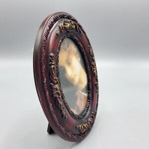 Vtg Oval Ornate Red & Gold Picture Frame Victorian Woman Portrait Resin Taiwan