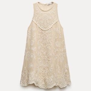 $129 ZARA 2024 ZW COLLECTION CONTRAST EMBROIDERY DRESS MEDIUM BEIGE 6895/073