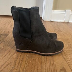 UGG Pax Waterproof Black Wedge Ankle Boots Sz 7.5