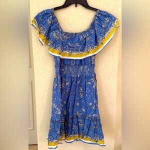 Max Studio Blue and Yellow Off-Shoulder Mini Dress