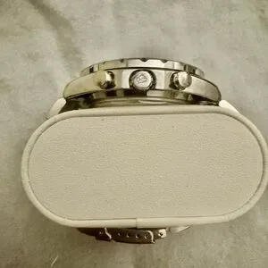 Sleek Breitling rep watch with a silver finish. Features a detailed chronograph. Ideal for style and precision. Carries nice weight and looks fantastic in any setting.