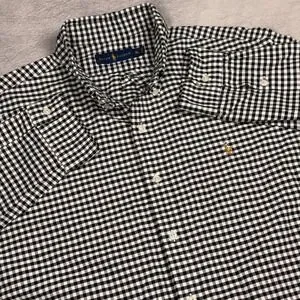 Ralph Lauren Gingham Button Up Shirt Long Sleeve Classic Fit Mens XL Black White
