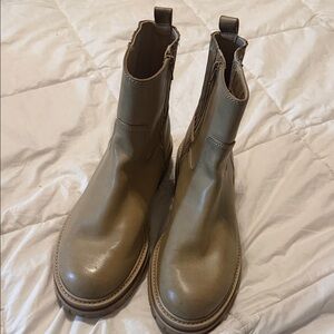 Comfortable Faux Leather Boots, Size 12W. Zipper side.