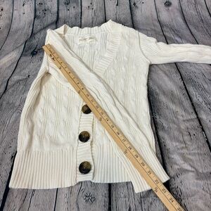 Chic cable knit design. Features button-up front. Ideal for layering. 100% cotton. Y2K Old Navy from 2007.