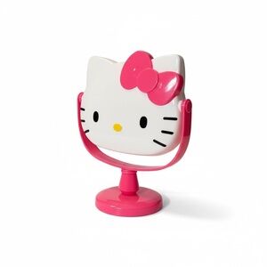 Charming Hello Kitty mirror with white face and pink bow. Ideal for fans young and old. Cute and functional design.