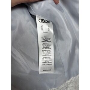 Keywords: ASOS blazer, cropped jacket, textured fabric, metallic sparkle, collarless, lightweight, office wear, evening jacket, smart casual, designer, modern, chic