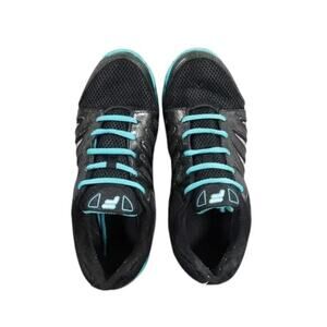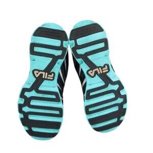 Used Fila Shoes Womens 10 Athletic Trainers Running Foam Cool Max Black Blue Comfort