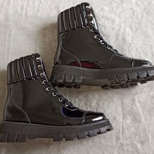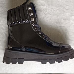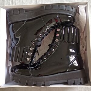Wore one time! Just not my vibe, I prefer regular to patent leather. Sleek black patent leather. Chunky sole. Lace-up design. Perfect for edgy style. No longer have original box but I will package with care!