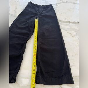 Condition: Very good, wrinkled, needs a lint roller, approximate 11” rise, two small slit pockets below front waistband.