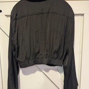 TCEC Cropped Wrap Blouse | Black Long Sleeve Twist Front Top | Size L